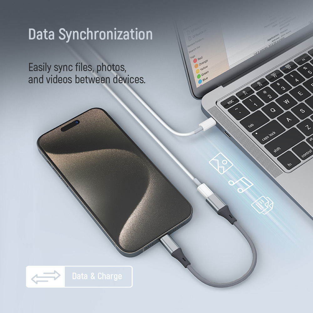 • Easy to use: plug your Lightning cable into the adapter and connect it to a USB-C port.