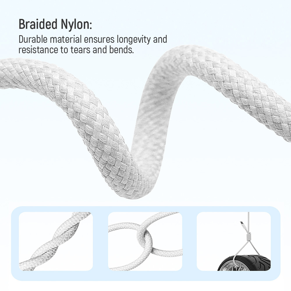 • Braided Nylon: Abrasion-resistant material provides durability and resistance to tears and kinks.