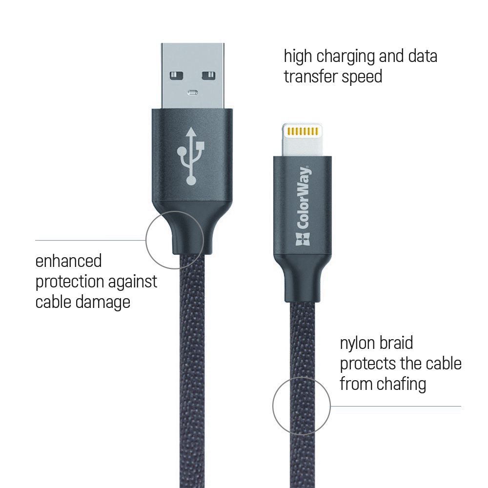 Cable Colorway USB Apple Lightning 1m 2.1A black (CW-CBUL004-BK)