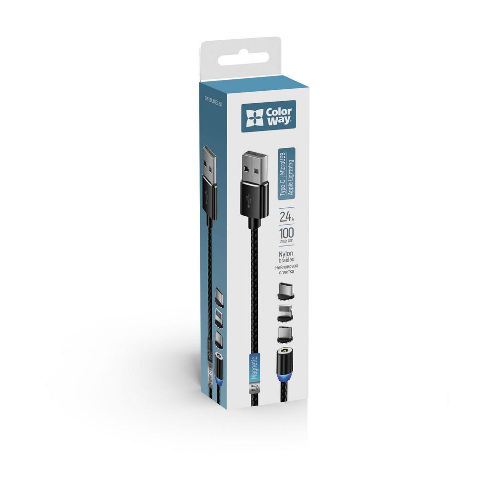 Cable Colorway 3in1 (Lightning+MicroUSB+Type-C) Magnetic 2.4А 1м black (CW-CBUU020-BK)