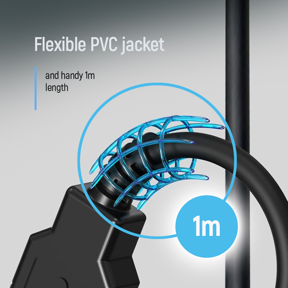 - Flexible and durable PVC jacket.