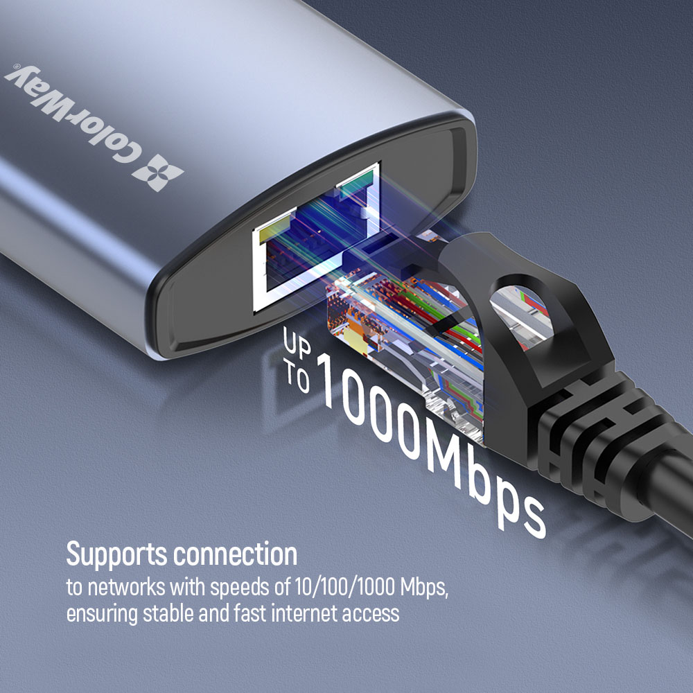 USB hub (docking station) ColorWay USB-C 6-in-1 is an ideal choice for those who seek to maximize the functionality of their laptop (tablet, smartphone, mini PC, etc.). This compact and powerful device adds six additional ports, making your laptop more versatile and easy to use. You can simultaneously connect all kinds of devices, charge gadgets, output 4K video and connect to the network at speeds of 10/100/1000 Mbps, which provides stable and fast Internet access - all with one cable. This hub is ideal for users who often work with a large number of peripheral devices, as well as for home use when additional ports are needed to connect a printer, external drives, smartphones and other gadgets.