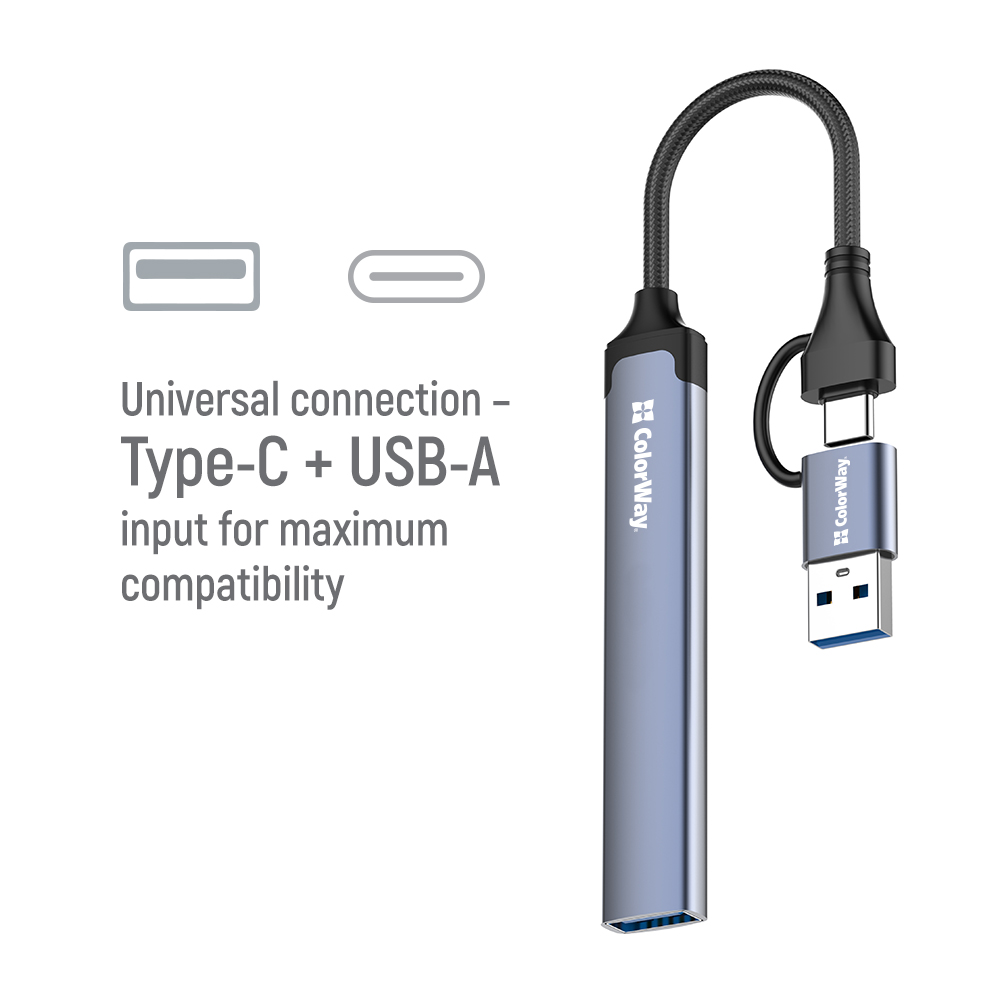 USB hub ColorWay USB-A/USB-C 4-в-1 USB2.0х2/USB3.0/USB-C2.0 (CW-HUB06)