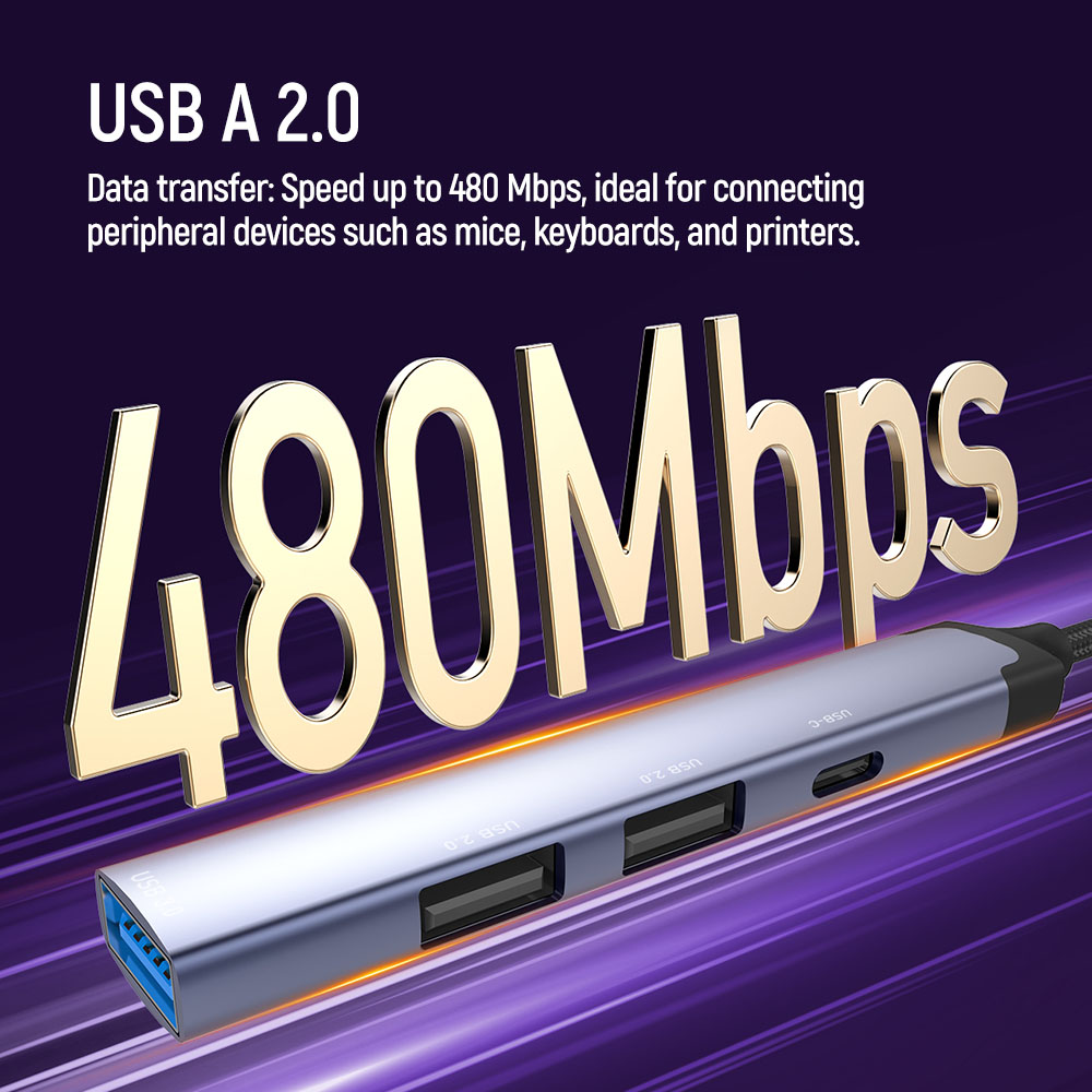 - High-speed data transfer: USB A 3.0 – transfer speed up to 5 Gbps., USB A 2.0 – data transfer up to 480 Mbps. USB Type-C 2.0 – data transfer up to 480 Mbps.
