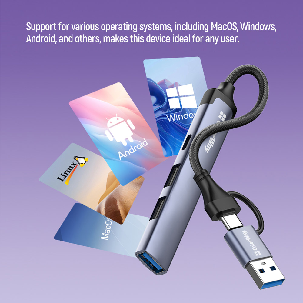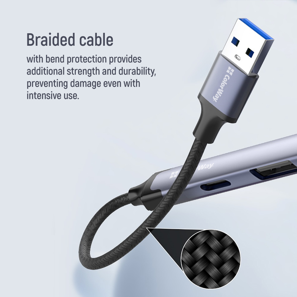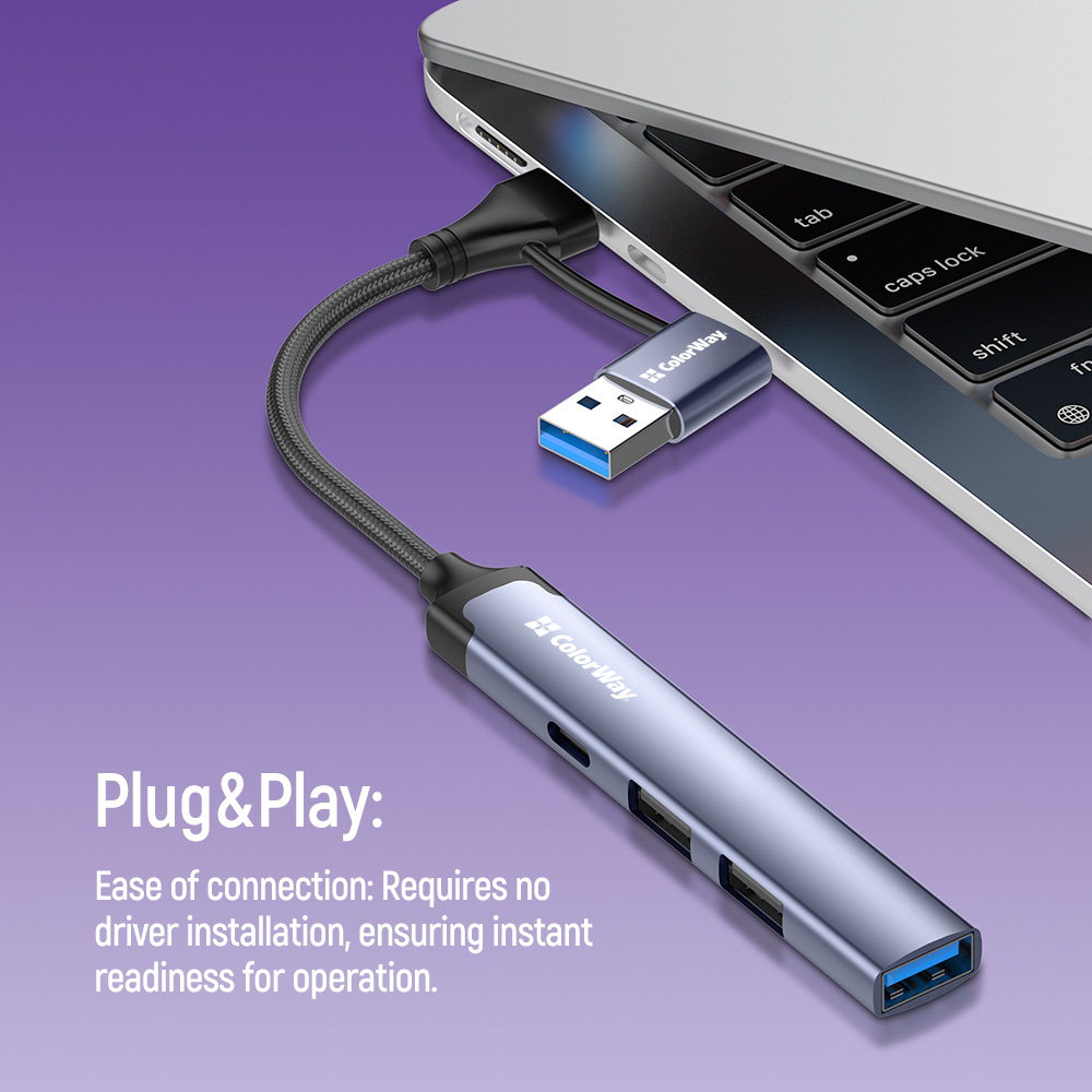 The ColorWay 4-in-1 docking station allows you to easily increase the number of available USB ports and enhance the convenience of working with your gadgets. This compact and stylish accessory is perfect for laptops, tablets, and smartphones, providing fast data transfer and universal compatibility.