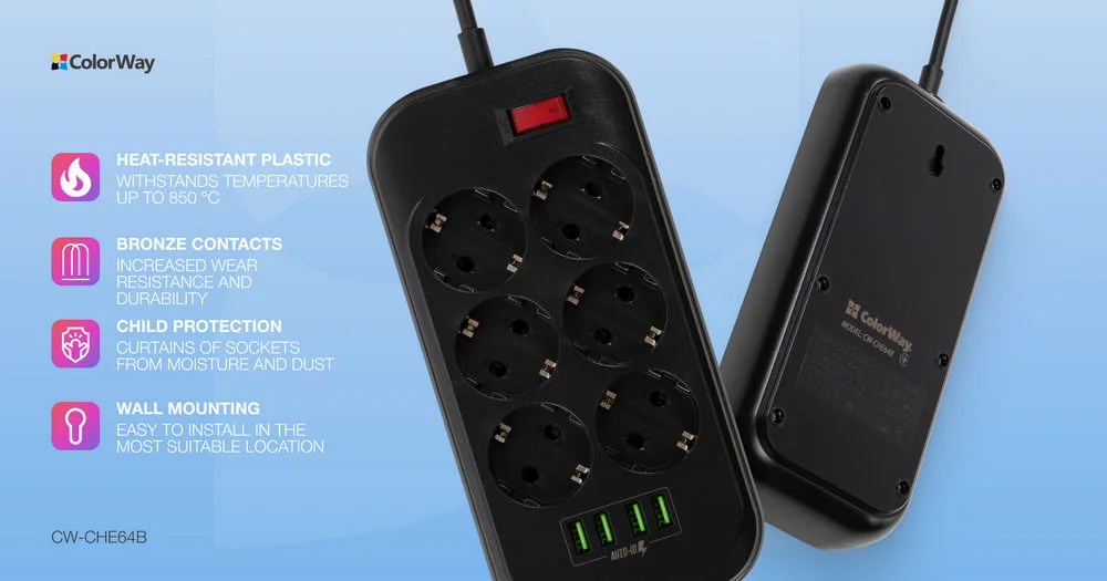 Power soсket СolorWay 6 euro sockets/4 USB (CW-CHE64B)