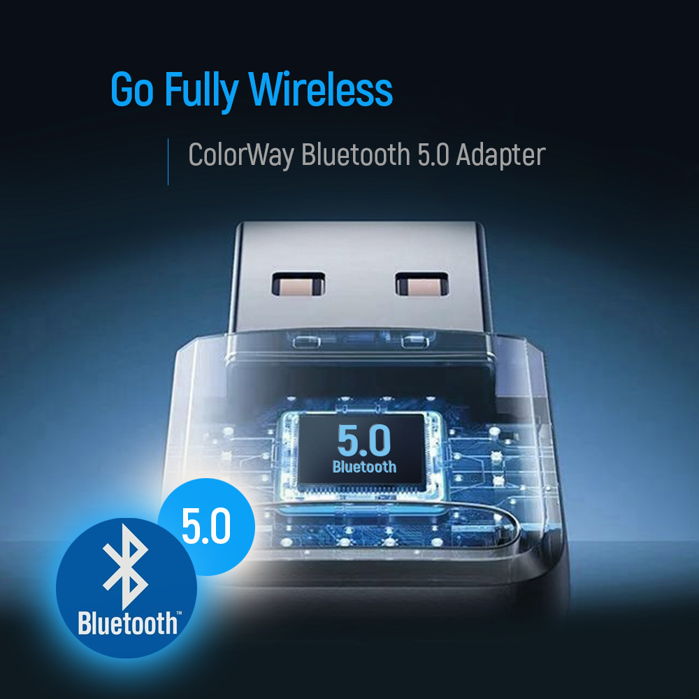 ColorWay Bluetooth 5.0 USB Adapter - transform your computer or laptop into a true wireless connectivity hub with the ColorWay Bluetooth 5.0 adapter. Connect wireless headphones, speakers, mice, keyboards, and other Bluetooth devices in just seconds.