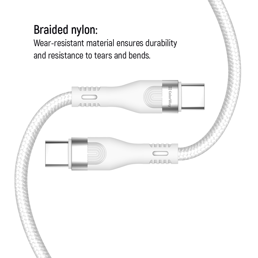 Cable Colorway Colorway Type-C - Type-C (braided nylon) (PD 240W) 5.0А 1м white (CW-CBPDCC065-WT)