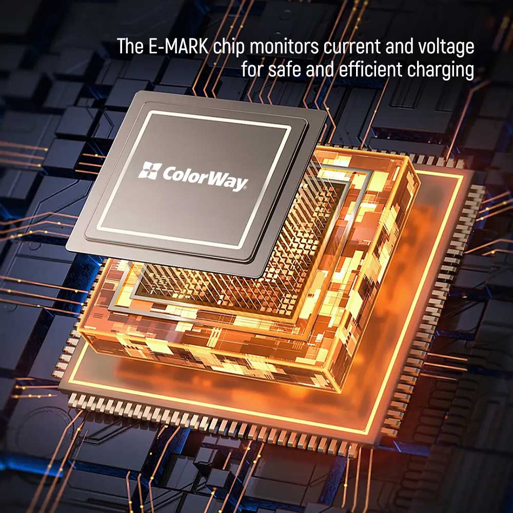 - Safety: E-MARK chip ensures protection against overvoltage and short circuits.