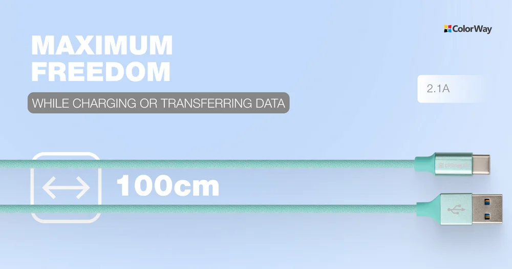 ColorWay's USB 2.0 AM to Type-C data cable lets you synchronize your data efficiently and charge your devices quickly. Supporting currents up to 2.1A, it provides optimal charging speeds so you can save time.