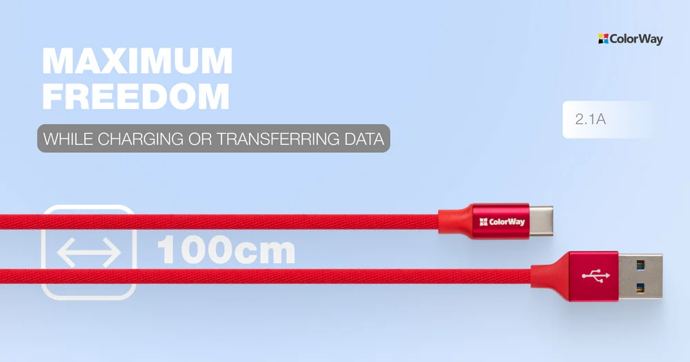 ColorWay's USB 2.0 AM to Type-C data cable lets you synchronize your data efficiently and charge your devices quickly. Supporting currents up to 2.1A, it provides optimal charging speeds so you can save time.