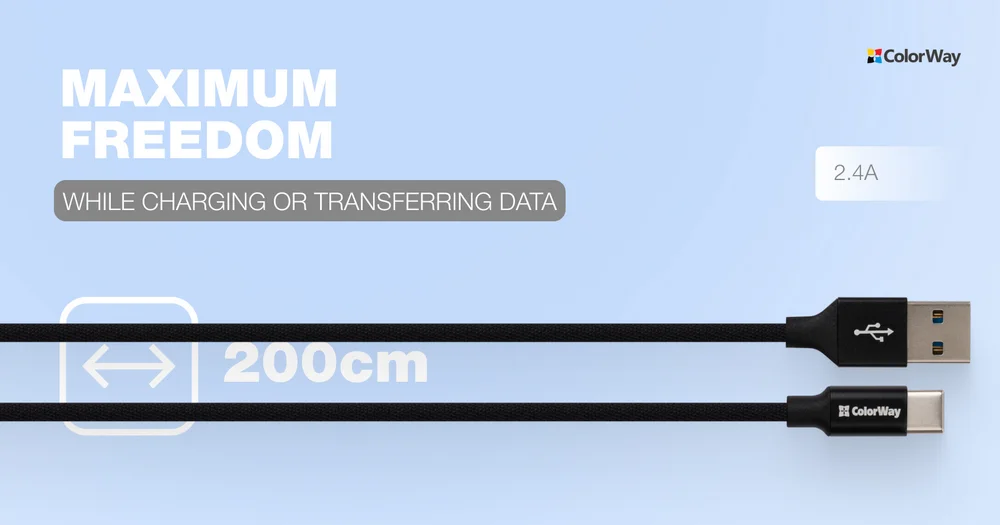 ColorWay's USB 2.0 AM to Type-C data cable lets you synchronize your data efficiently and charge your devices quickly. Supporting currents up to 2.1A, it provides optimal charging speeds so you can save time.
