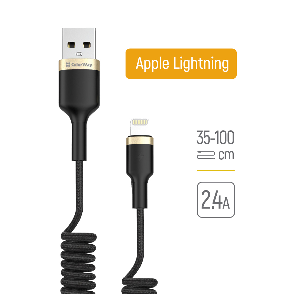 Cable Colorway USB - Apple Lightning (spiral) 2.4A 1m black (CW-CBUL051-BK)