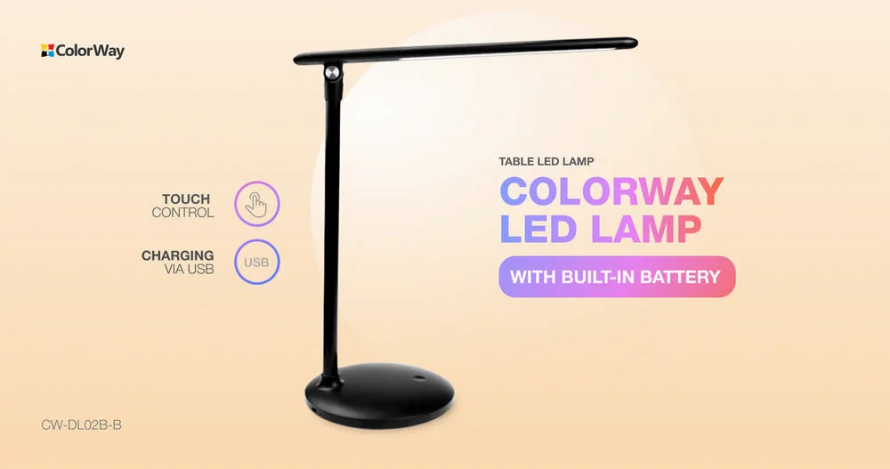 LED table lamp ColorWay with built-in battery Black (CW-DL02B-B)