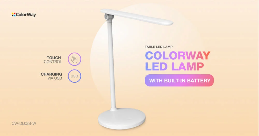 LED table lamp ColorWay with built-in battery White (CW-DL02B-W)