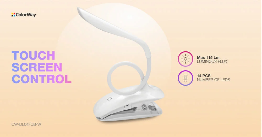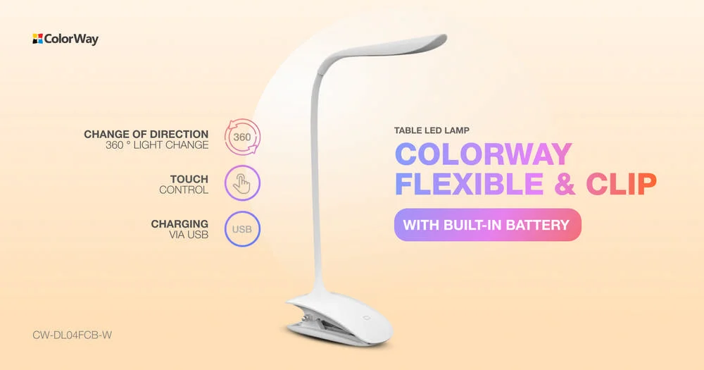 LED table lamp ColorWay Flexible & Clip with built-in battery White (CW-DL04FCB-W)