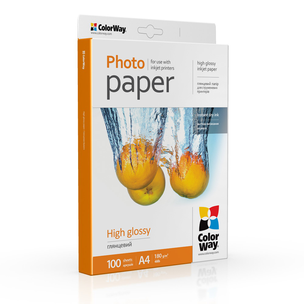 Photo paper ColorWay high glossy 180 g/m², A4, 100 sht. (PG180100A4)