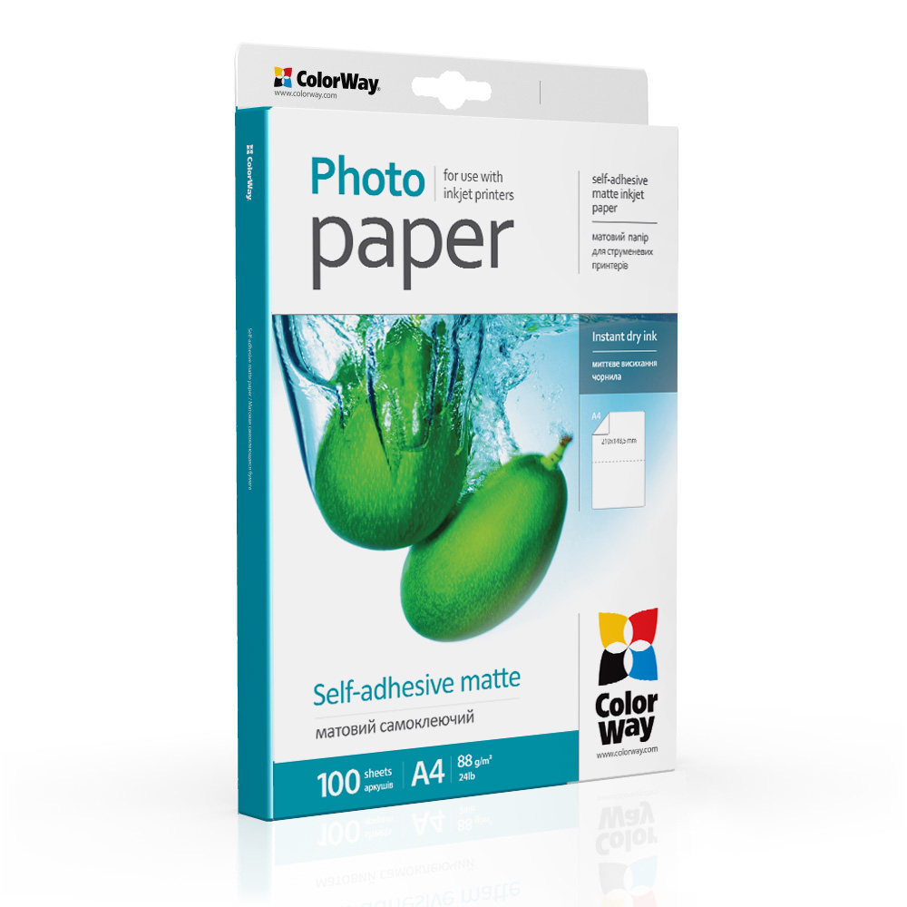 ColorWay self-adhesive matte paper is designed for printing labels on inkjet printers. The special matte coating ensures sharp images, vibrant colors and easily readable text without glare. Thanks to the adhesive backing, labels peel off the liner easily and adhere securely to most smooth surfaces.