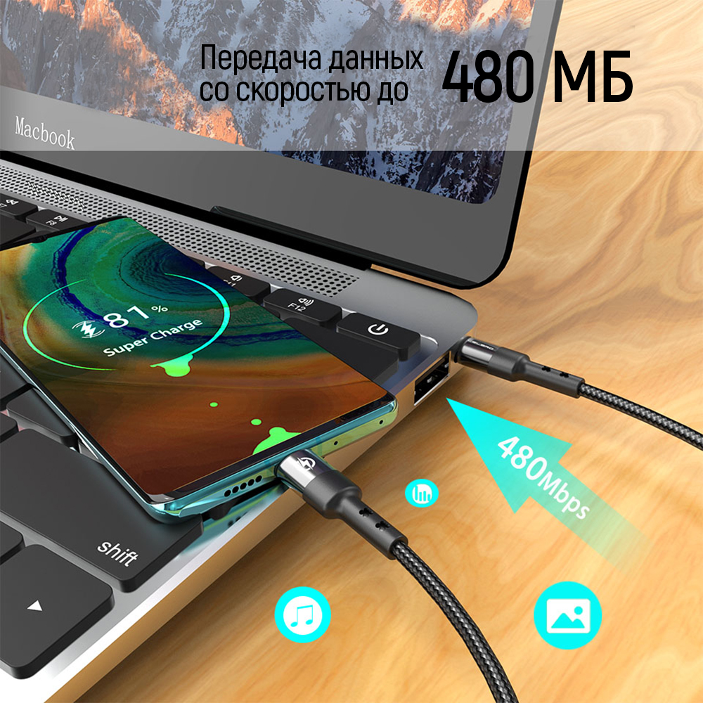 Кабель поддерживает современные протоколы скоростной зарядки Qualcomm Quick Charge 3.0 и USB Power Delivery 2.0 с максимальной мощностью до 68 Вт (20V 3A) (при условии, если заряжаемое устройство поддерживает функцию быстрой зарядки USB Type-C/PD 3А). Совместим с устройствами с USB Type-C разъёмом. Это высококачественный и современный кабель, который имеет высокую степень надежности и долговечности, защищен от износа и изломов при длительном использовании.