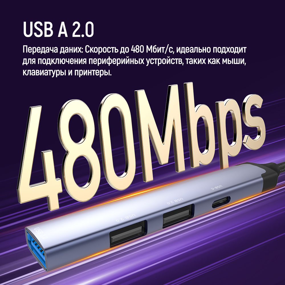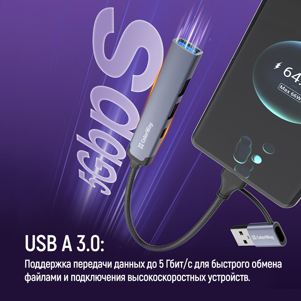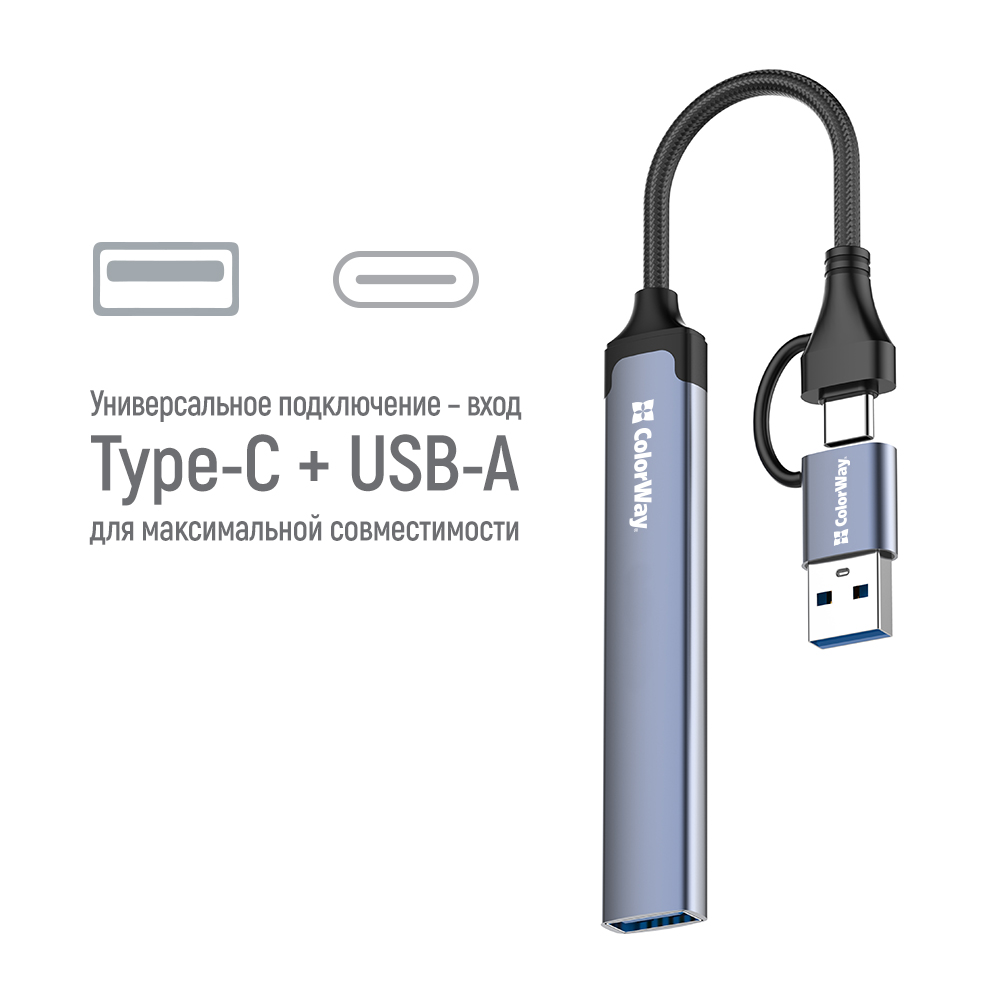USB хаб СolorWay USB-A/USB-C 4-в-1 USB2.0х2/USB3.0/USB-C2.0 (CW-HUB06)