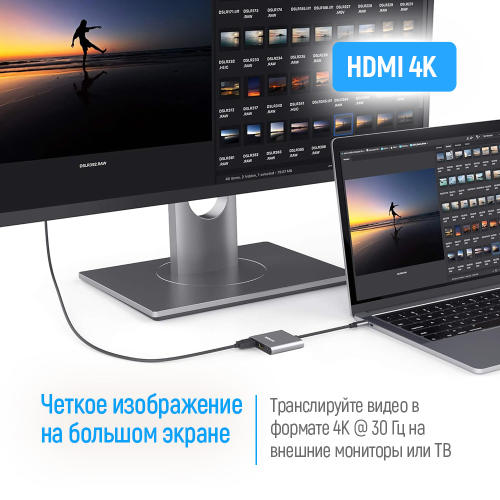 - HDMI-порт — вывод видео в формате 4K (30 Гц).