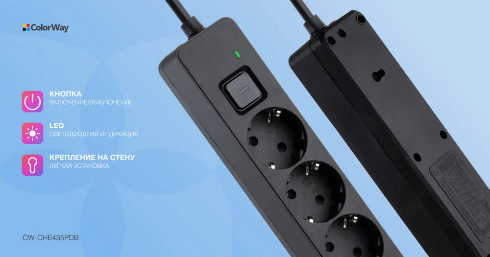 Кнопка включения/выключения и светодиодная индикация сделают пользование еще более удобным. Отверстие для настенного монтажа позволяет легко закрепить сетевой фильтр на стене, что обеспечивает удобный доступ к розеткам и экономит рабочее пространство.