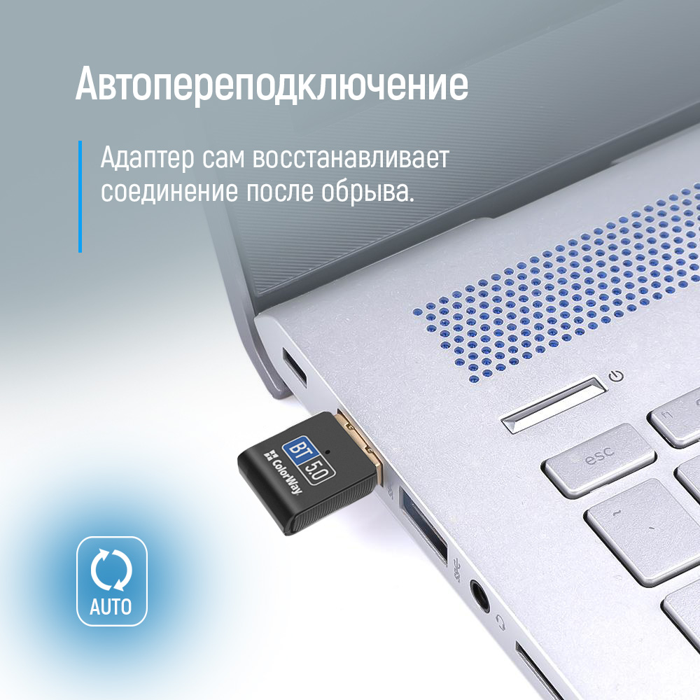 Адаптер ColorWay Bluetooth 5.0 USB - превратите ваш компьютер или ноутбук в полноценный центр беспроводной связи с адаптером ColorWay Bluetooth 5.0. Подключайте беспроводные наушники, колонки, мыши, клавиатуры и другие Bluetooth-устройства всего за несколько секунд.