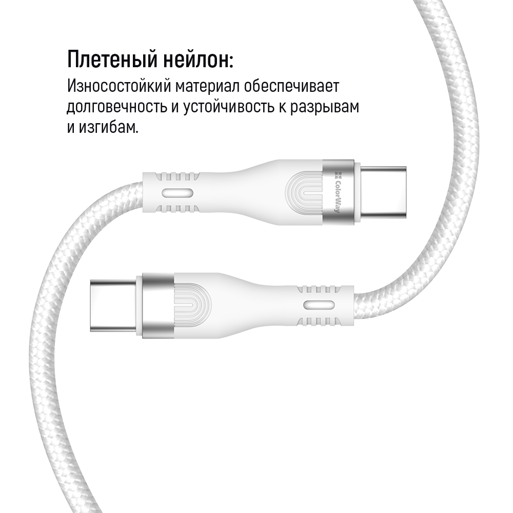 Кабель Colorway Colorway Type-C - Type-C (braided nylon) (PD 240W) 5.0А 1м белый (CW-CBPDCC065-WT)
