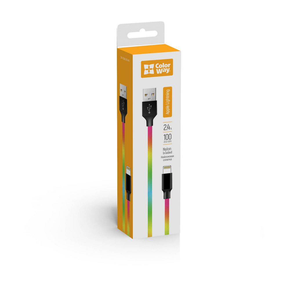 Кабель Colorway USB Apple Lightning (multicolor) 2.4А 1м (CW-CBUL016-MC)