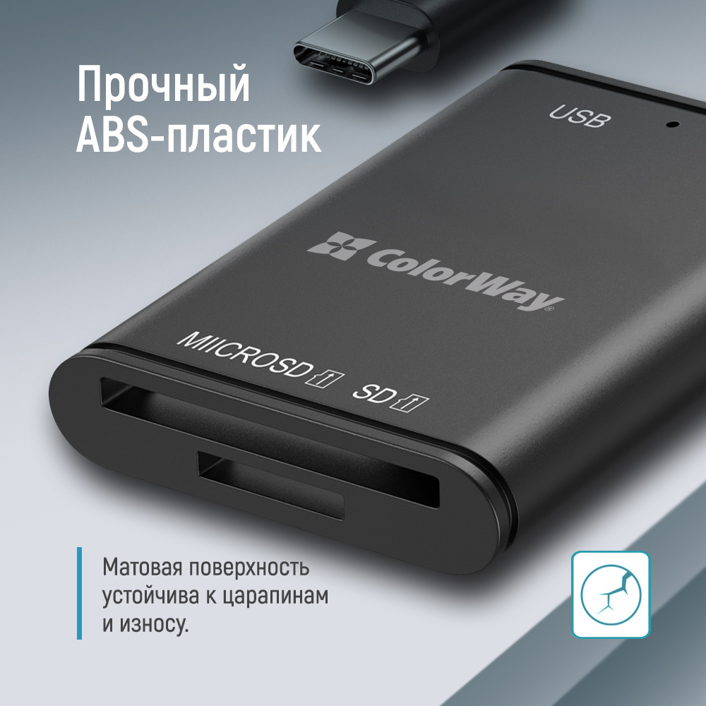 Имя: Кардридер Colorway USB-C to USB 3.0/SD/MicroSD (CW-CR-02)