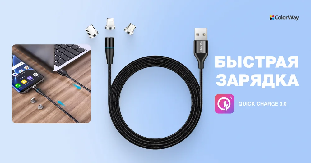 Технология Quick Charge 3.0, интегрированная в кабель, позволяет заряжать ваши устройства в разы быстрее, сокращая время ожидания. Независимо от того, каким гаджетом вы пользуетесь, кабель обеспечит эффективную и быструю зарядку, что делает его незаменимым в повседневной жизни. Почувствуйте все преимущества быстрой зарядки с ColorWay.