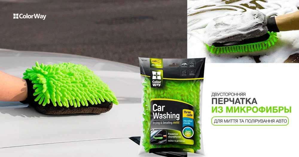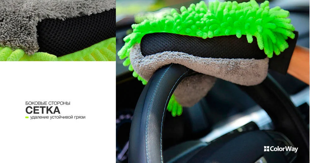 Перчатка ColorWay из микрофибры для мытья и полировки автомобиля, двусторонняя (CW-2417)
