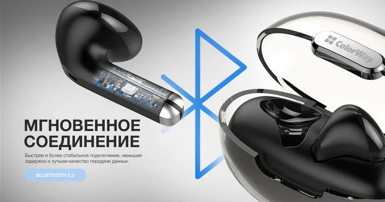- Bluetooth 5.3 гарантирует быстрое автоматическое подключение наушников, бесспорное качество и стабильность передачи беспроводного аудио