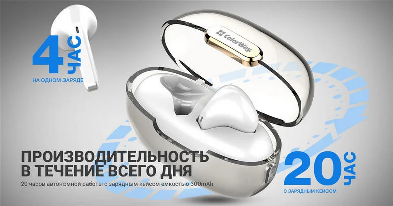 Наушники СolorWay Slim TWS-2 Earbuds обеспечивают до 4 часов непрерывной работы на одном заряде. А вместе с компактным зарядным кейсом они могут работать до 20 часов без подзарядки, что делает их идеальным выбором для долгих прогулок, тренировок или поездок.
