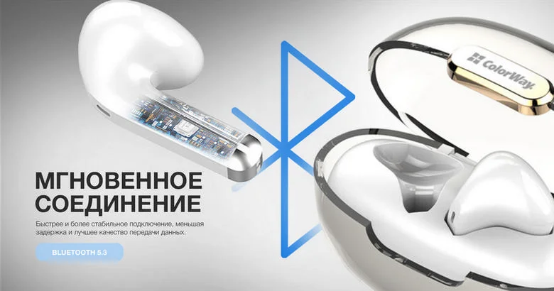 - Bluetooth 5.3 гарантирует быстрое автоматическое подключение наушников, бесспорное качество и стабильность передачи беспроводного аудио
