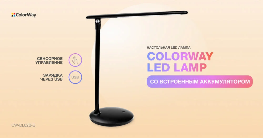 Настольная светодиодная лампа ColorWay со встроенным аккумулятором