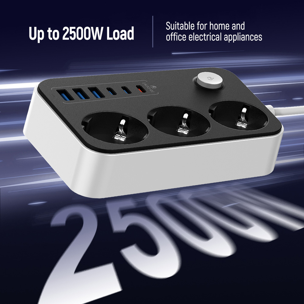 | Название: | Сетевой фильтр-удлинитель СolorWay 3 розетки/4USB GaN3 Pro PD (2USB-A + 2 TYPE-C) (65W) 2M white |