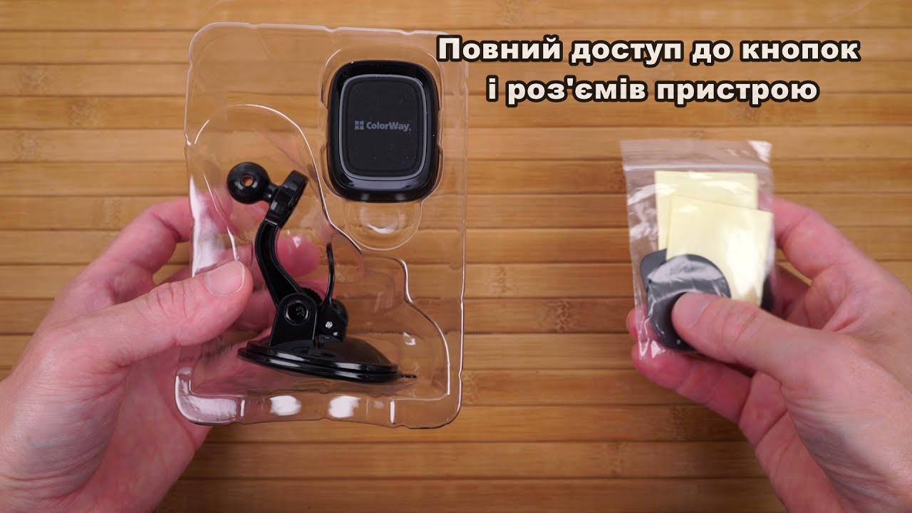 - Кріплення на панель або на лобове скло за допомогою присоски з гелевою клейкою основою і затискачем за технологією подвійного клацання