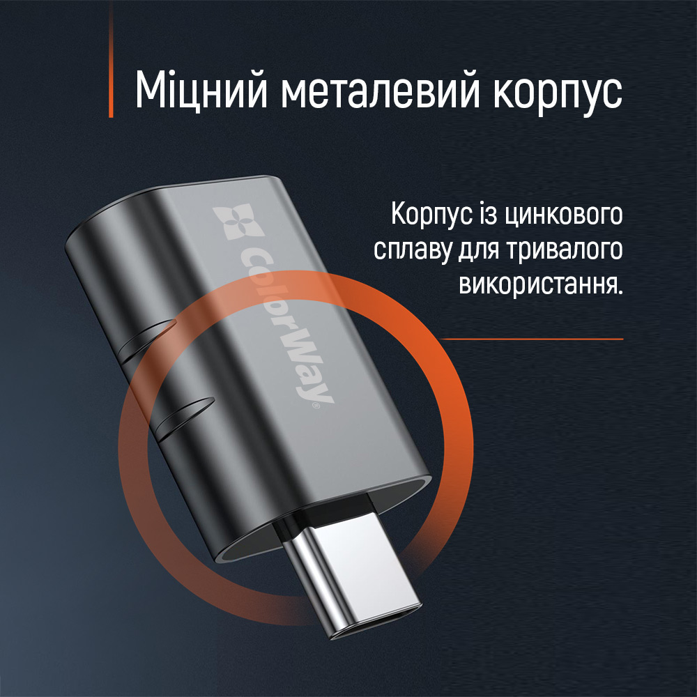 Адаптер-перехідник ColorWay USB-A to USB-C 3.2 дозволяє легко підключати USB-пристрої до сучасних девайсів із роз'ємом USB Type-C. Використовуйте його для підключення клавіатури, миші, флеш-накопичувачів, кардридерів, зовнішніх жорстких дисків та інших пристроїв до комп'ютера, ноутбука, смартфона чи планшета.