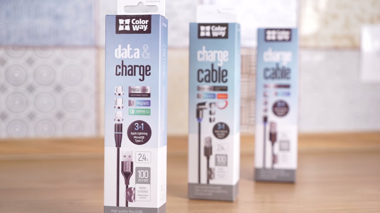 Магнітний кабель 3в1 ColorWay для зарядки - Високоякісний магнітний кабель з функцією ротації на 540 градусів для зарядки телефону, планшета або інших електронний пристроїв, які мають роз'єми Lightning, microUSB або Type-C. Кабель швидко заряджає необхідний пристрій, він має надійний і потужний магніт, а також Led індикатор. Зовні аксесуар обтягнутий шаром нейлонового покриття, завдяки чому кабель важко зігнути або пошкодити. Довжина кабелю становить 1 метр, чого повинно цілком вистачити для комфортного використання вдома або в офісі.