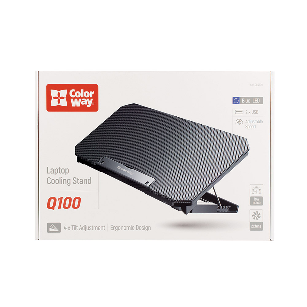 Охолоджувальна підставка для ноутбука ColorWay — це надійне рішення для комфортної роботи за ноутбуком та ефективного відведення тепла. Міцна металева поверхня з великою перфорацією забезпечує максимальний повітряний потік, а два потужні вентилятори рівномірно охолоджують корпус пристрою навіть під високим навантаженням.