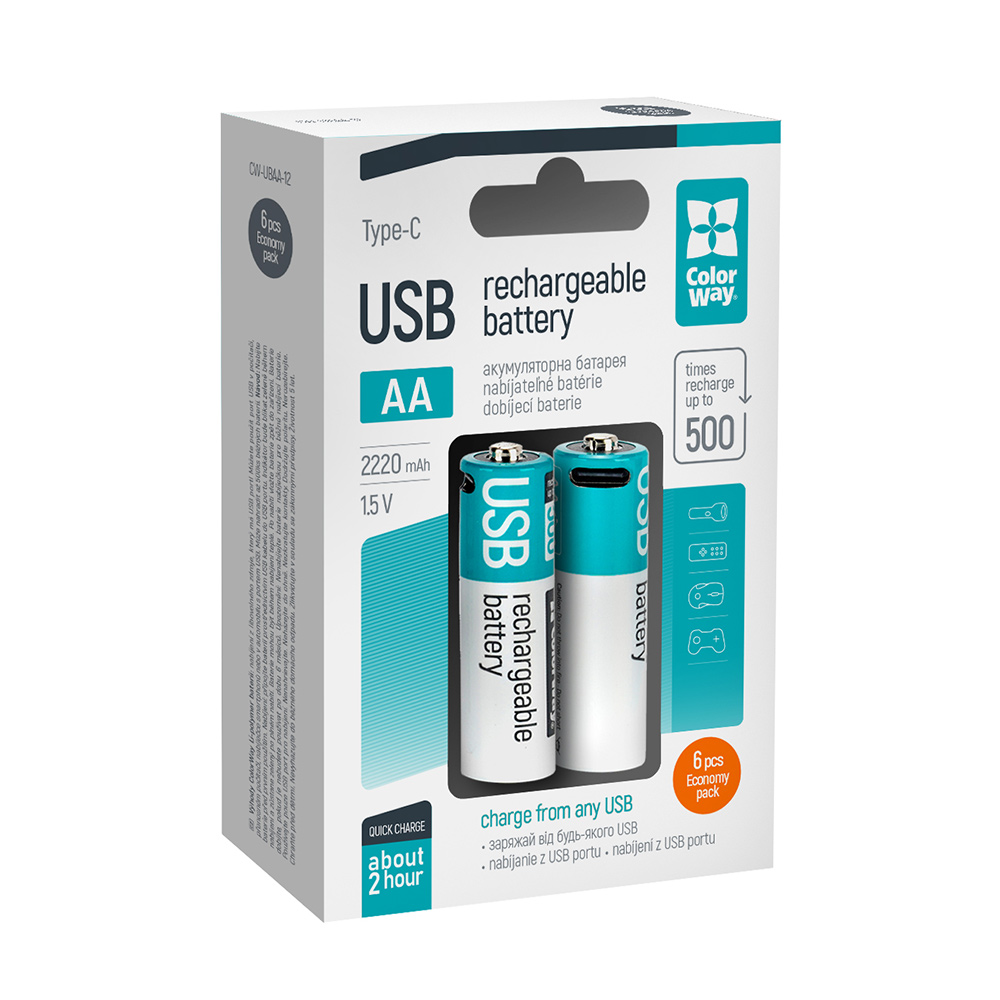 Акумуляторні USB батарейки ColorWay представляють собою інноваційний спосіб зберігання енергії. За розмірами і функціональністю вони не відрізняються від звичайних батарейок, що робить їх ідеальним вибором для різноманітних електронних пристроїв, від комп'ютерних аксесуарів до фотоапаратів. Одна акумуляторна USB батарейка ColorWay може замінити до 500 звичайних батарейок, забезпечуючи тривале використання. Основна перевага полягає в можливості заряджати їх з будь-якого пристрою з USB-портом, такого як комп'ютер, ноутбук чи автомобільна зарядка. Швидке заряджання відбувається всього за 1-2 години, що дозволяє швидко повернутися до роботи чи розваг. Використання акумуляторних USB батарейок ColorWay - це зручно, економно і дбайливо до навколишнього середовища.