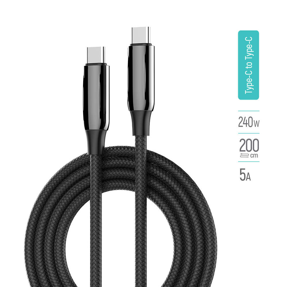 Ідеальне рішення для швидкої зарядки та передачі даних. Мідна серцевина забезпечує високу швидкість зарядки, а нейлонове обплетення та подовжені роз'єми додають міцності та захисту від переломів. Кабель підтримує технологію Power Delivery (PD) з потужністю до 240W для швидкої зарядки ноутбуків, планшетів та смартфонів, а також пропускну здатність до 5.0A для стабільної зарядки та швидкої передачі даних.