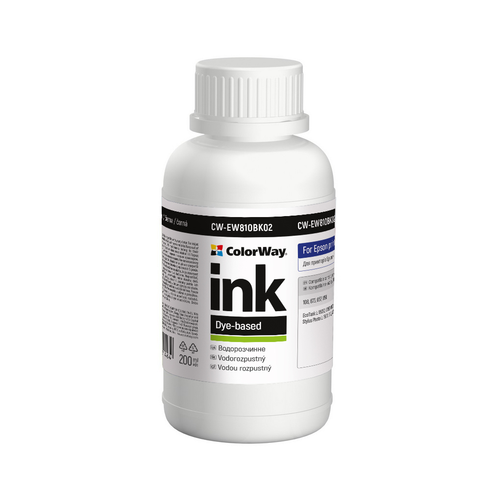Чорнила ТМ ColorWay відрізняються високою світло-і водостійкістю, широкою гамою кольорів і особливою чіткістю одержуваних відбитків. Зображення надовго збереже яскравість, завдяки впровадженню у виробництво чорнила ColorWay новітніх наукових розробок Переваги чорнила ТМ ColorWay: покращена закріплення і хімічна стійкість; передача кольору найбільш близька до оригінальних чорнилам; повна сумісність з оригінальним чорнилом; оптимальне співвідношення ціна / якість.