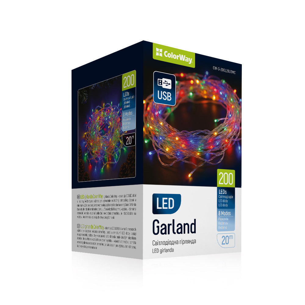 Світлодіодна гірлянда ColorWay — це 200 світлодіодів і 8 режимів роботи для забезпечення святкової атмосфери. Яскраві та мініатюрні світлодіоди подарують легкість і незабутні враження завдяки різнобарвному світлу. Гірлянда стане відмінним доповненням до інтер’єру будинку. Особливо доречно вона виглядатиме на зимовій красуні — ялинці, адже допоможе створити унікальне новорічне вбрання. Ідеально підходить для декору літніх терас, кафе, вітрин магазинів, виїзних заходів.