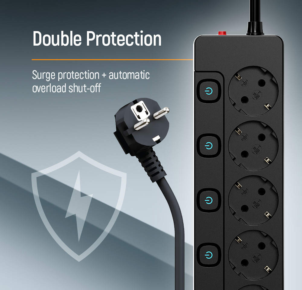Назва: | Мережевий фільтр-подовжувач СolorWay 4 розетки/4USB (Type-C PD20W + 3USB QC3.0) (45W) Black 2M black |
