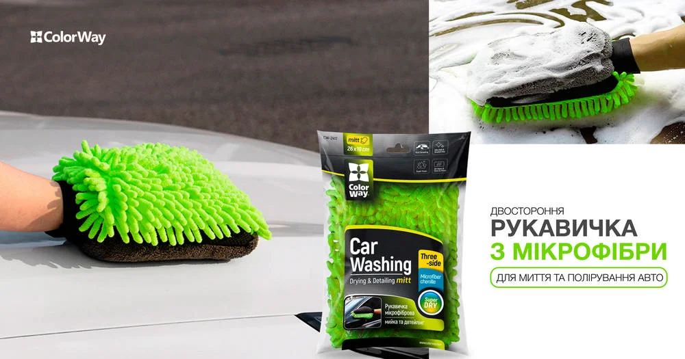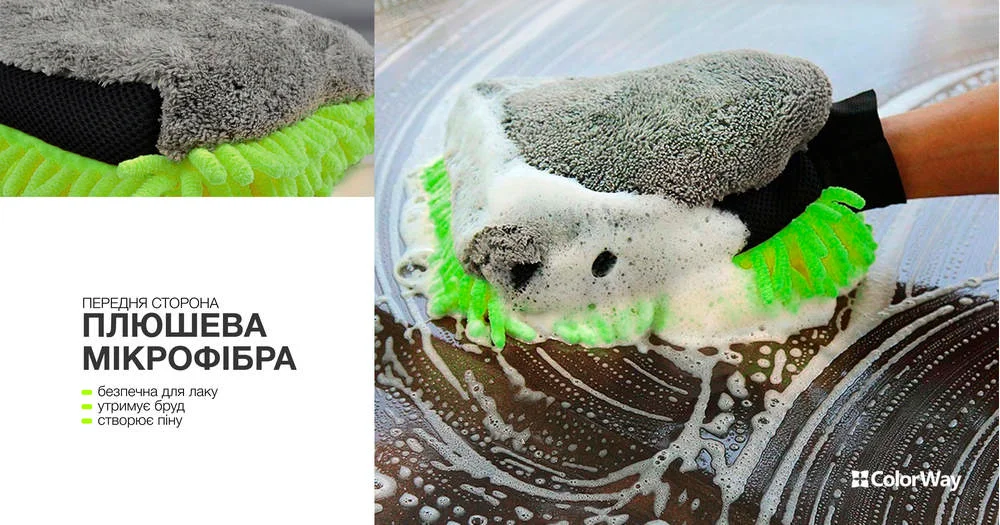 Рукавичка ColorWay з мікрофібри для миття та полірування автомобіля, двостороння (CW-2417)