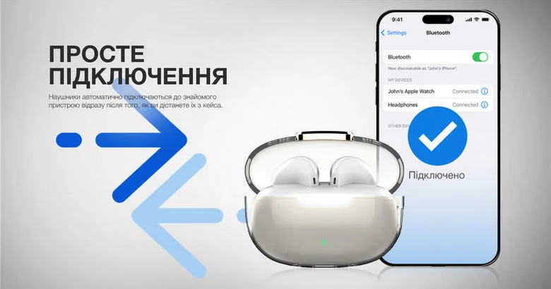 Насолоджуйтесь миттєвим підключенням до вашого пристрою без зайвих зусиль. Сумісність із різними пристроями, вбудований мікрофон у кожному навушнику - все це робить використання зручним і безпечним.