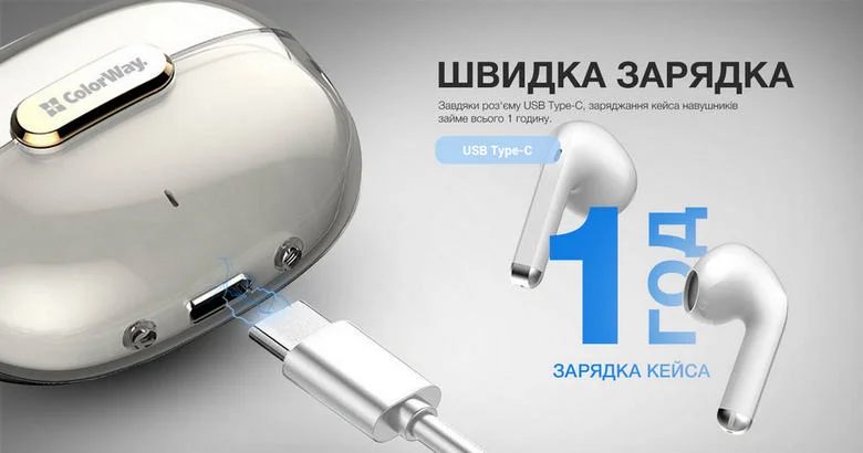 Не гайте часу на очікування - навушники-гарнітура СolorWay Slim TWS-2 Earbuds забезпечують швидке заряджання за допомогою сучасного роз'єму USB Type-C. Усього за 1 годину ви отримаєте повністю заряджений кейс і готовність до прослуховування музики.