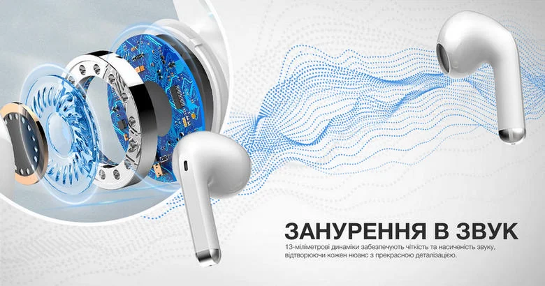 - Bluetooth 5.3 гарантує швидке автоматичне підключення навушників, безперечну якість і стабільність передачі бездротового аудіо